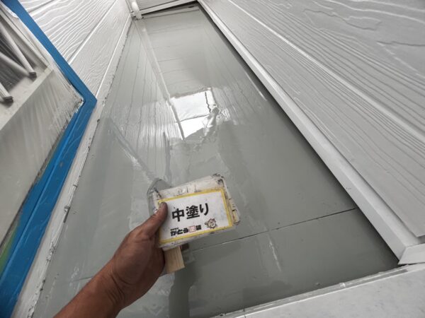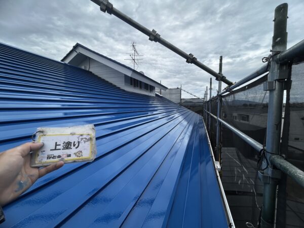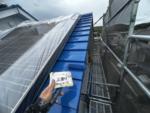 屋根の上塗りの様子です。