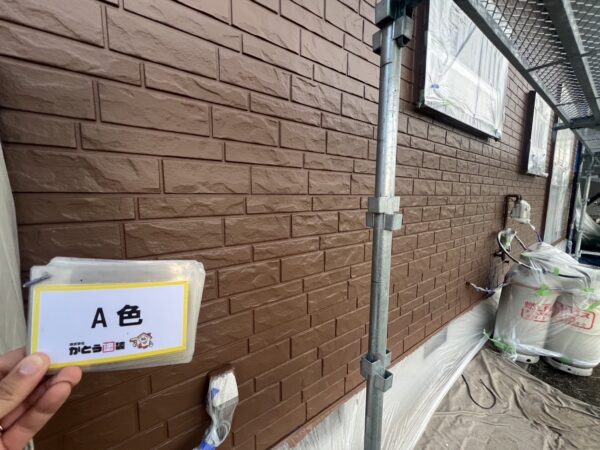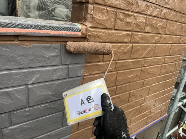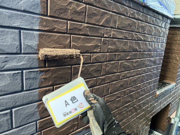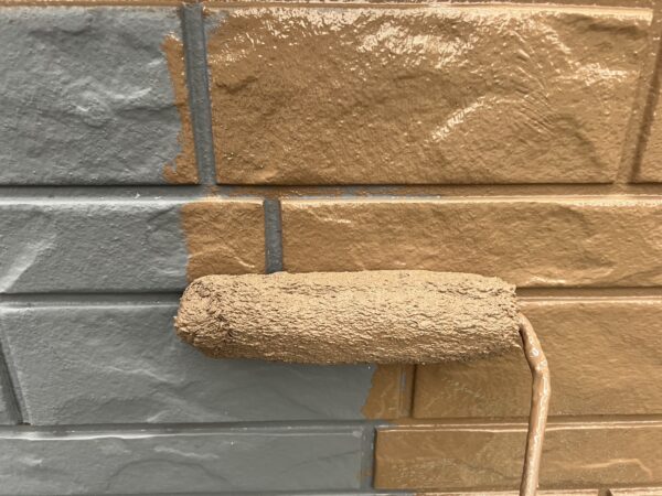 合志市F様邸外壁塗装,WB多彩仕上げ工法のA色を塗装しました
