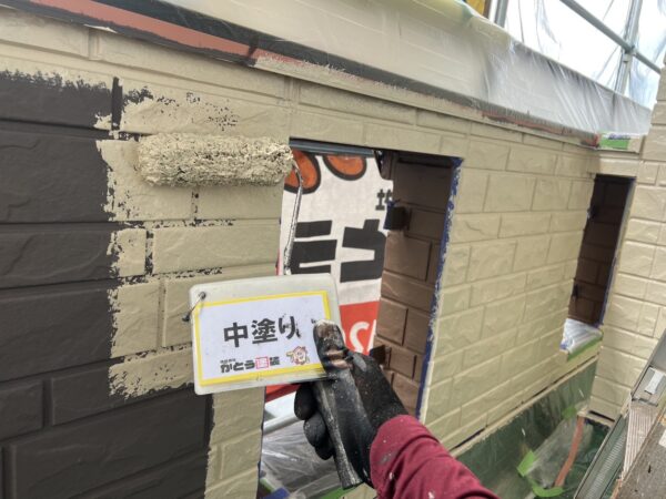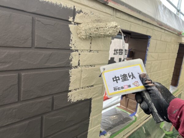 外壁の中塗りの様子です。