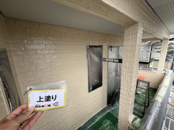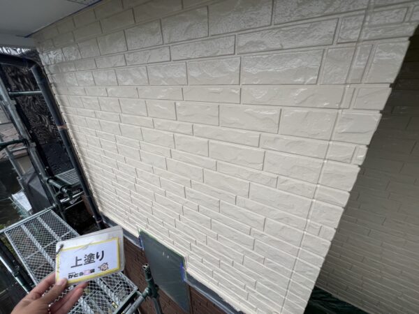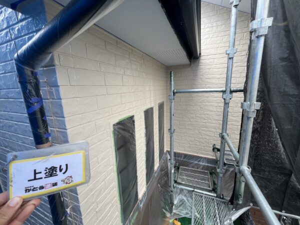 合志市F様邸外壁塗装,外壁の上塗りをおこないました