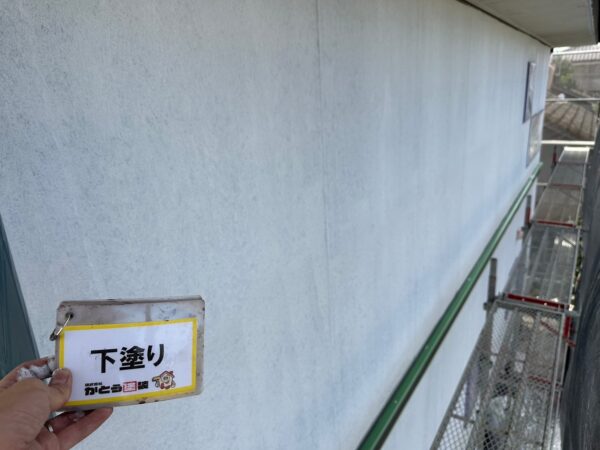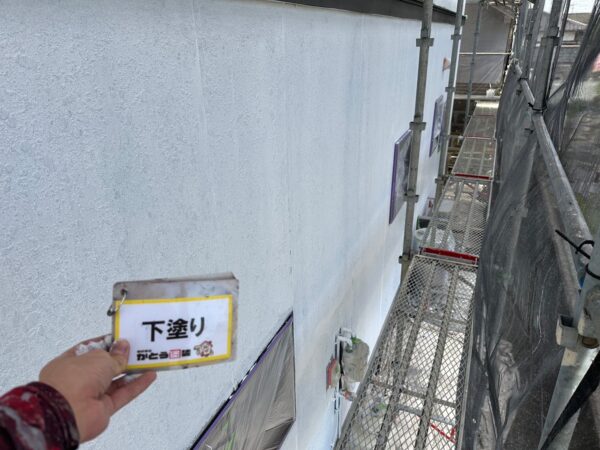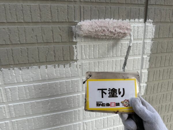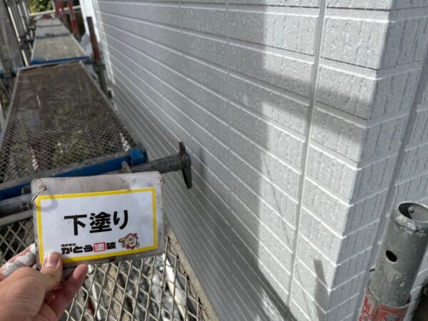 八代郡F様邸外壁塗装,外壁の下塗りをおこないました