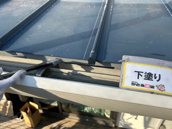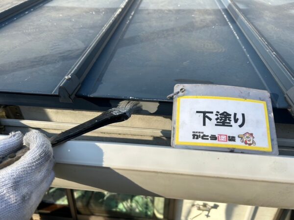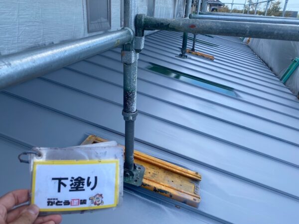 下塗りに使用した「サビ止めGTエポプライマーストロング」は、上塗りとの密着性を高める役目を果たしてくれます。