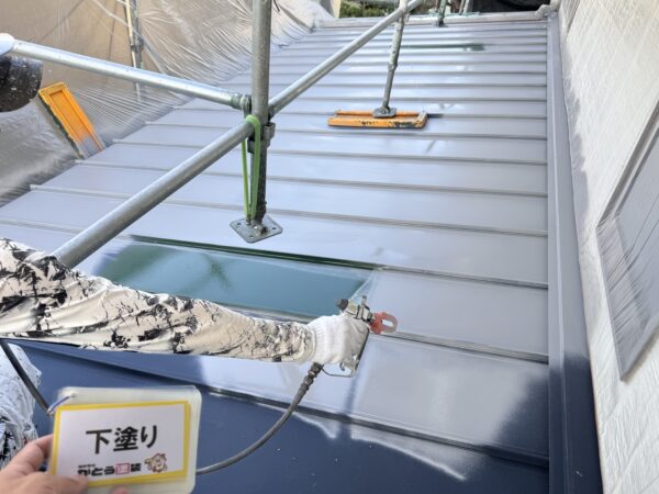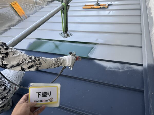 上益城郡N様邸屋根塗装,下塗り吹付塗装をおこないました