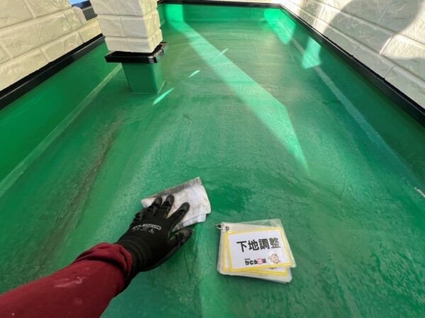 FRP防水なのでケレンが完了してからアセトンで拭き取ります