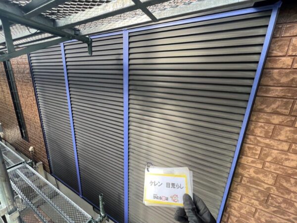 雨戸、戸袋のケレン状況になります180番のペーパーで荒い箇所はケレンをして仕上げは200番~320番で表面を平滑にします