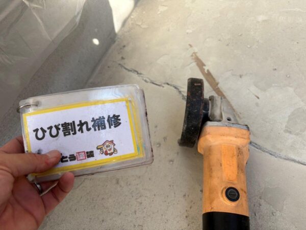 ご覧のように奥深くまで亀裂がはいっております、表面だけ補修しても塗装をしてすぐにひび割れがまたはいります、手間ですがしっかりとやらせていただきます