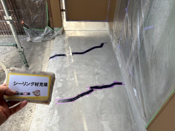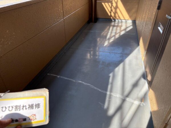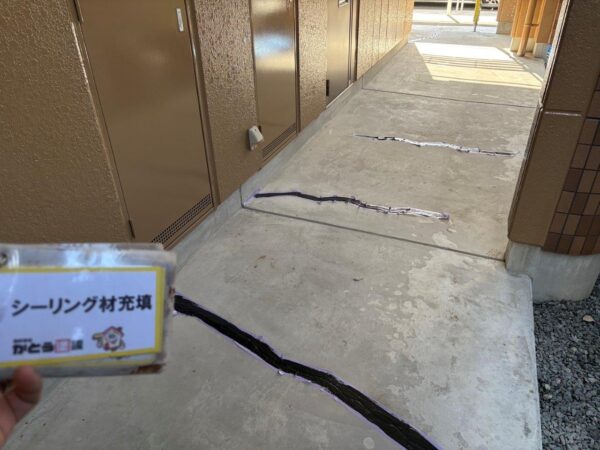 熊本市西区アパート塗装,屋上防水 1F通路のVカット