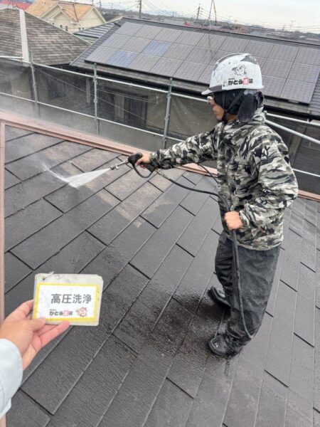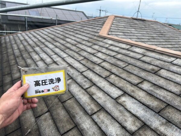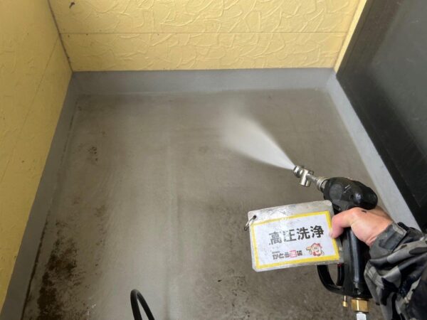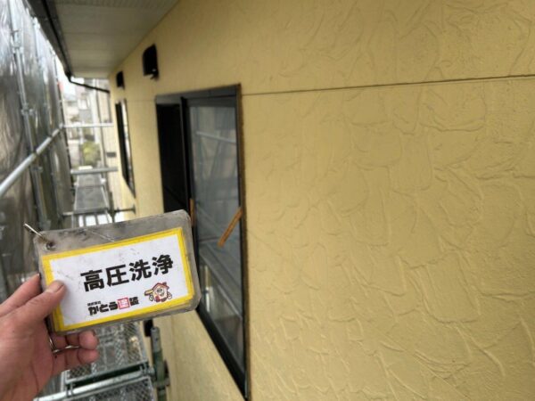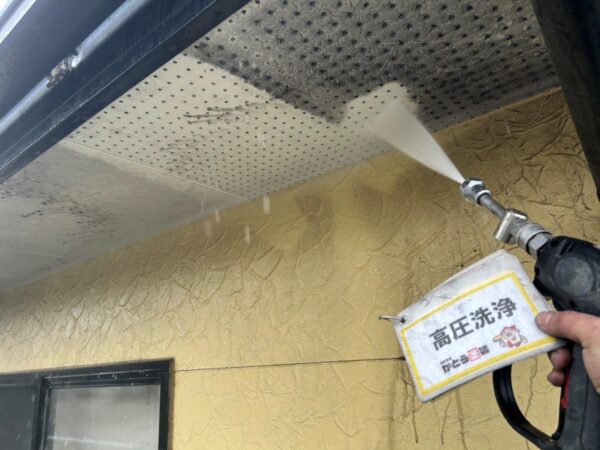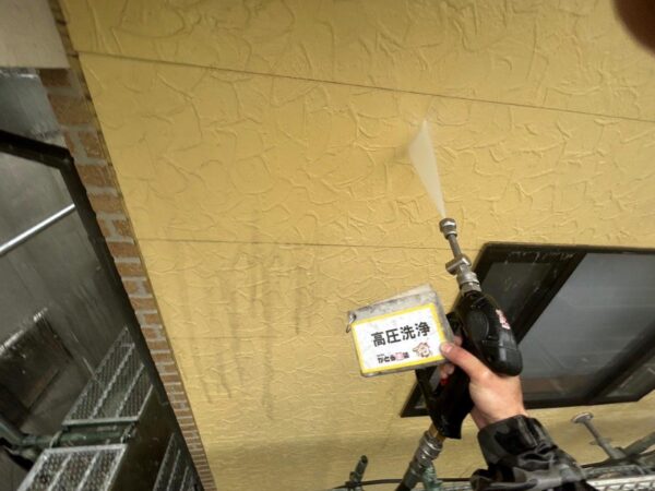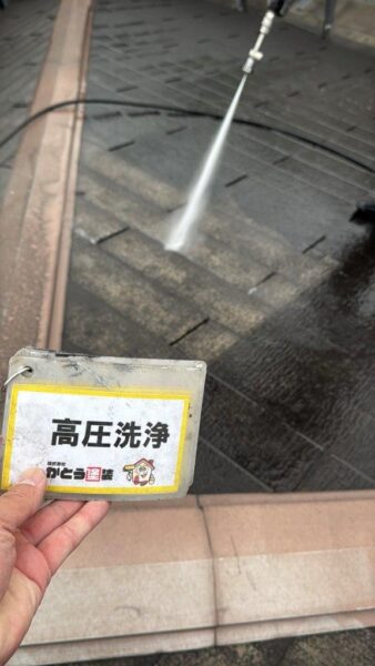 高圧洗浄状況になります、洗浄している箇所と既存箇所ではこのように差がわかります