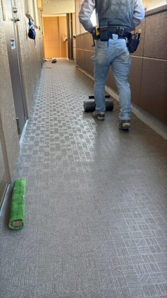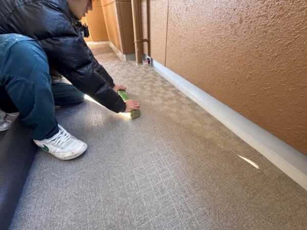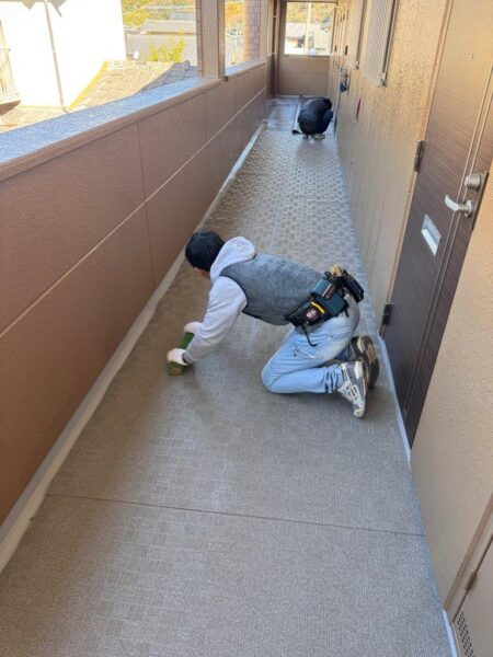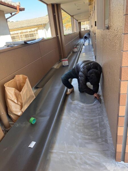 熊本市西区アパート塗装,2階通路部の防水シート貼り