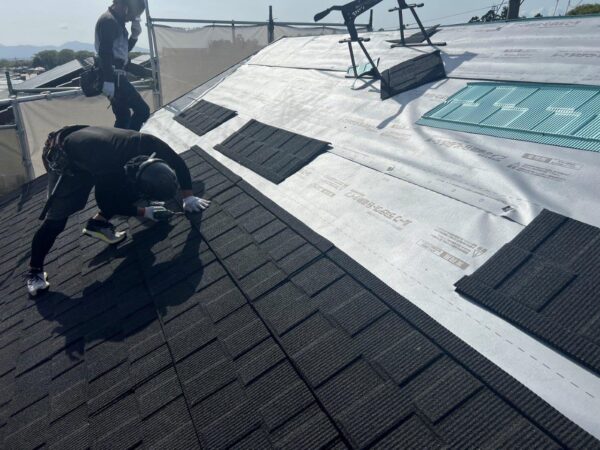 建物が高台にありますので、風あたりが強いとのことでしたそのために瓦に瓦止めのコーキングをしました