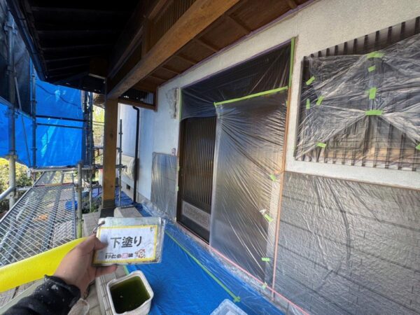 合志市N様邸外壁塗装,外壁下塗り塗装
