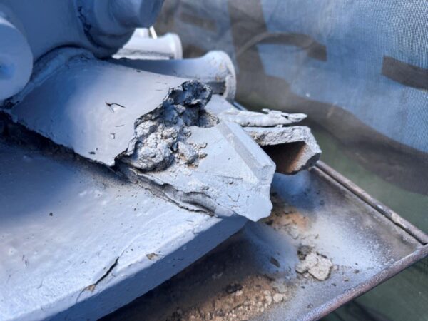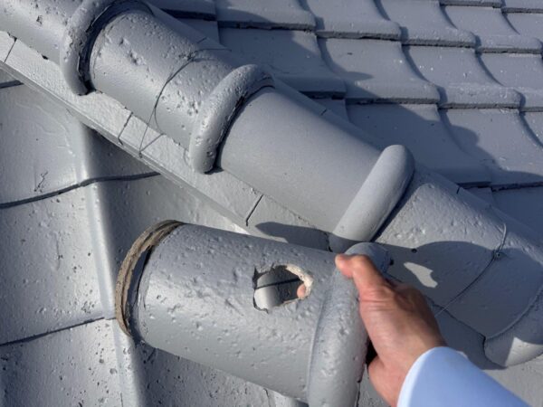 巴もこのようになっていますセメントと砂の分量がおかしいとおもいます、熊本ではセメント瓦を生産している会社が以前は多くありましたがもうありません僕が知っているのは1社のみです潰れる前に売れ残らないために配合がめちゃくちゃだったと聞いています、このように時間が経過しないとわかりませんからね