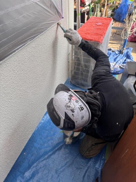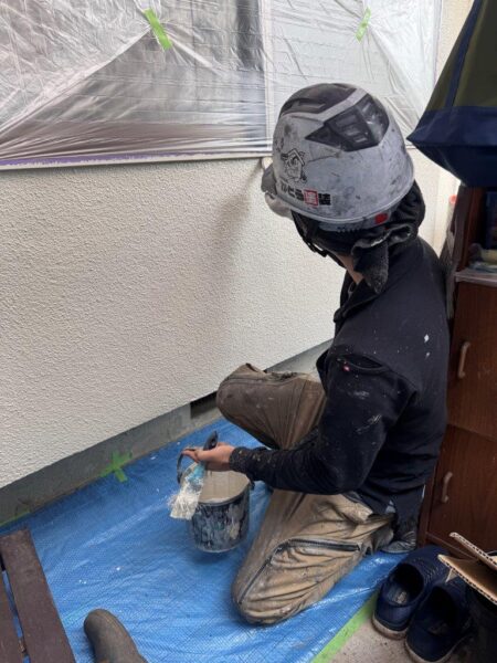 丁寧にサッシ下、見えずらい箇所も塗装します