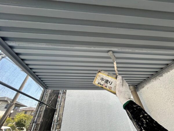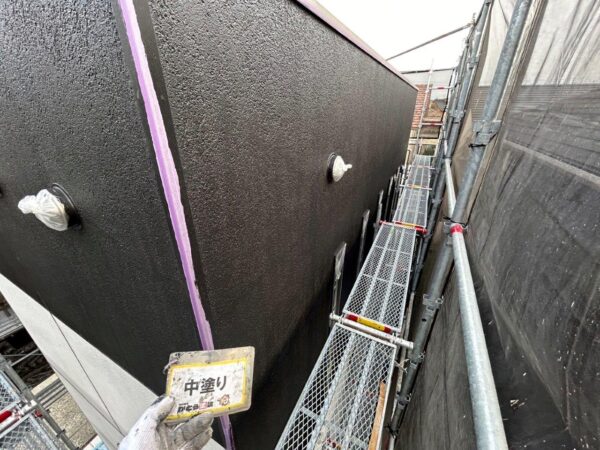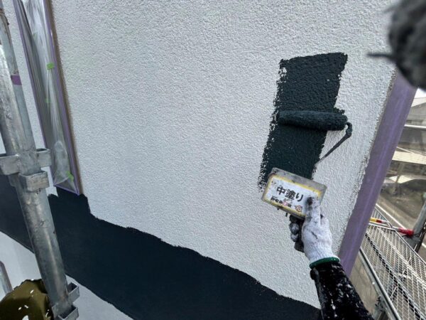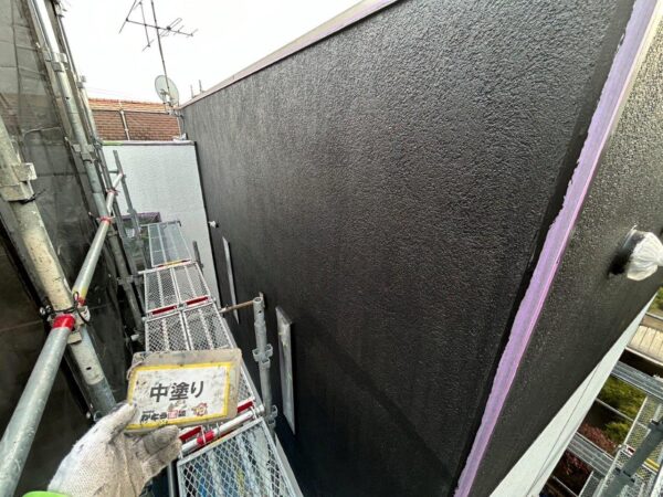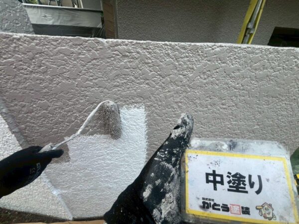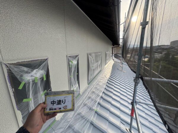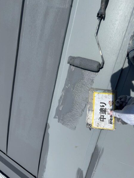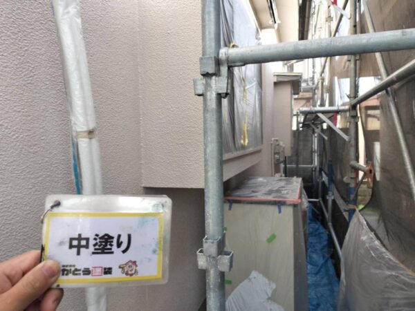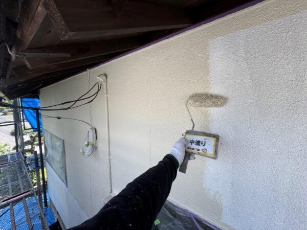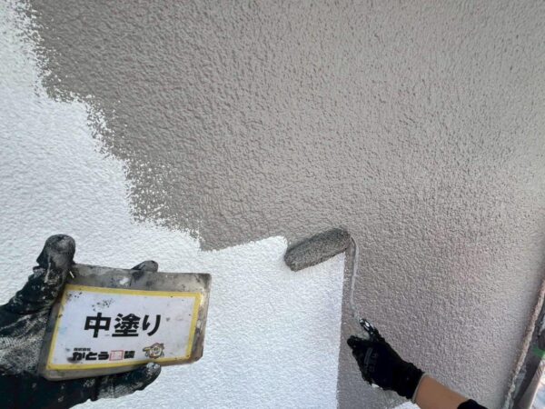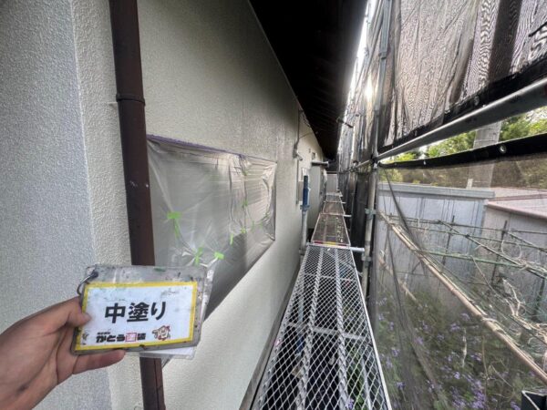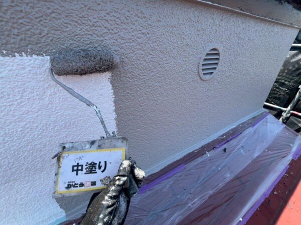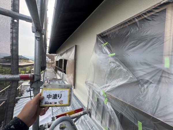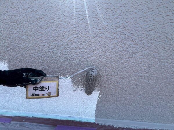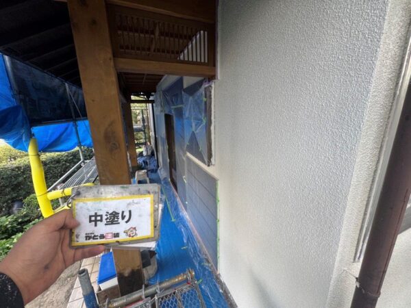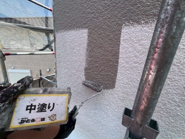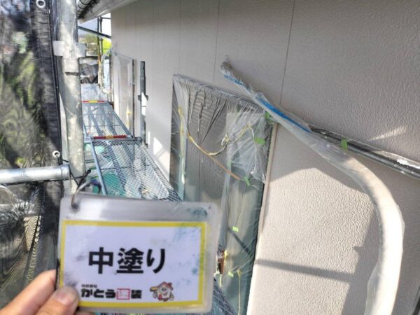 合志市N様邸外壁塗装,外壁の中塗りをおこないました