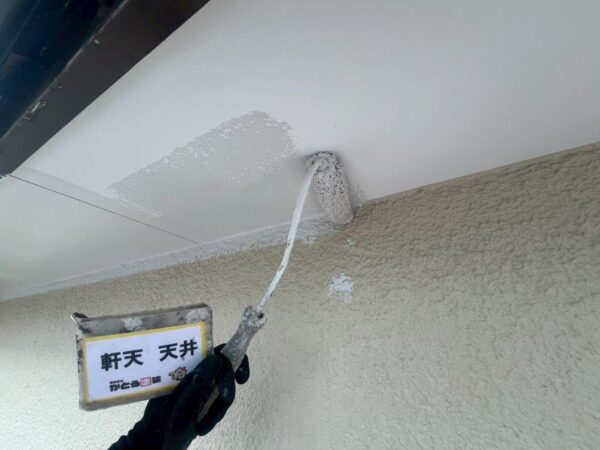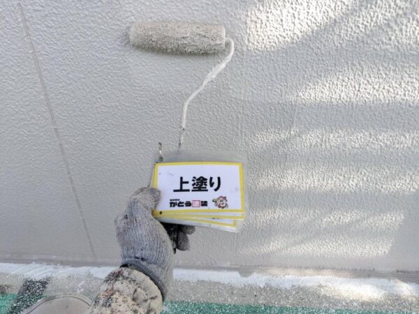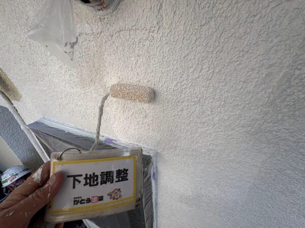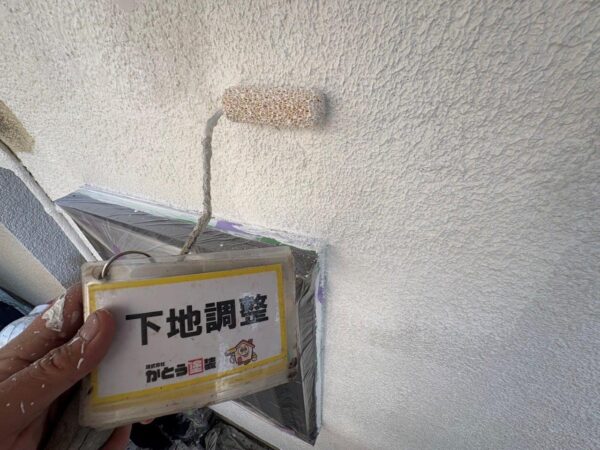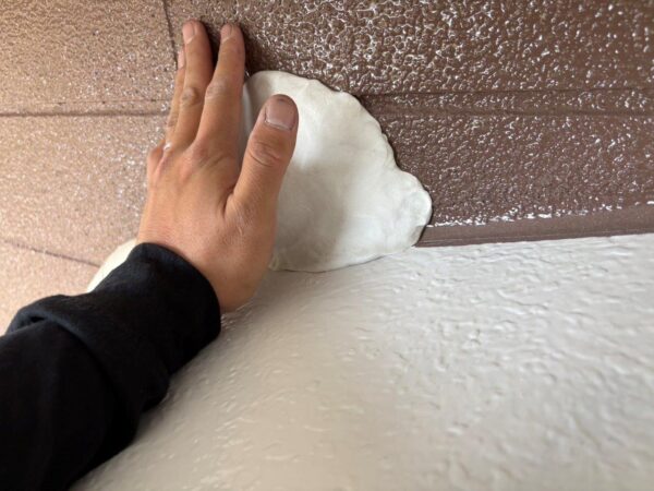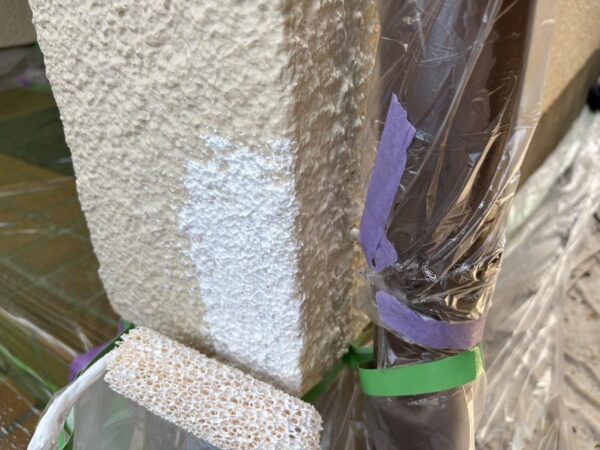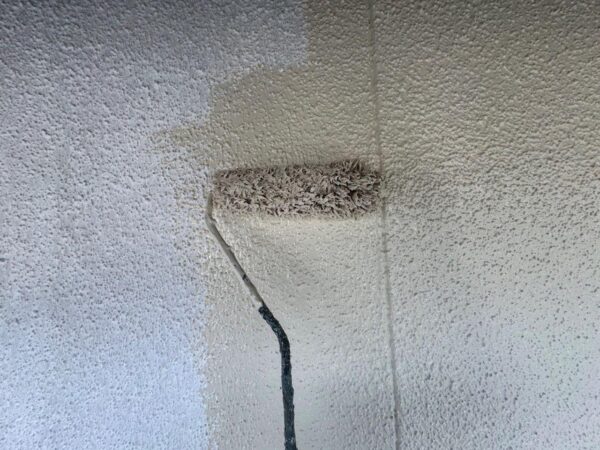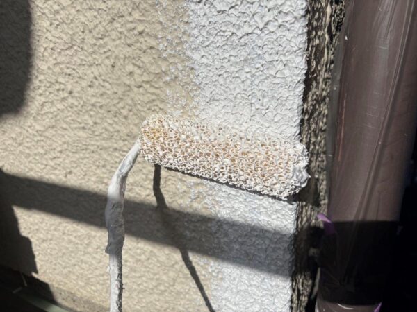マスチィックローラーで模様づけをして既存の外壁と模様を合わせていきます