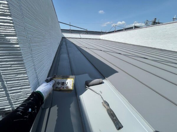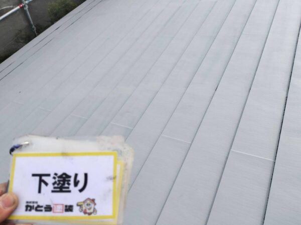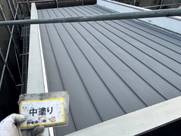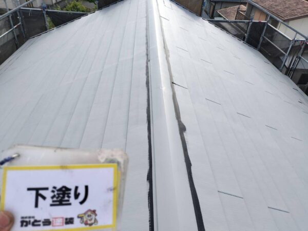 屋根塗装状況になります、断熱塗料のガイナで塗装しています