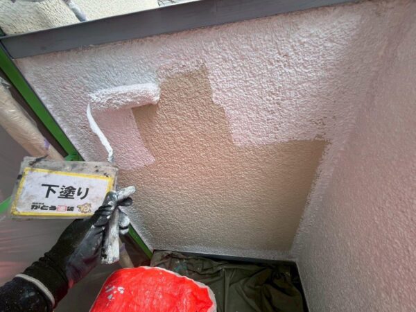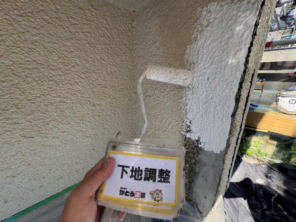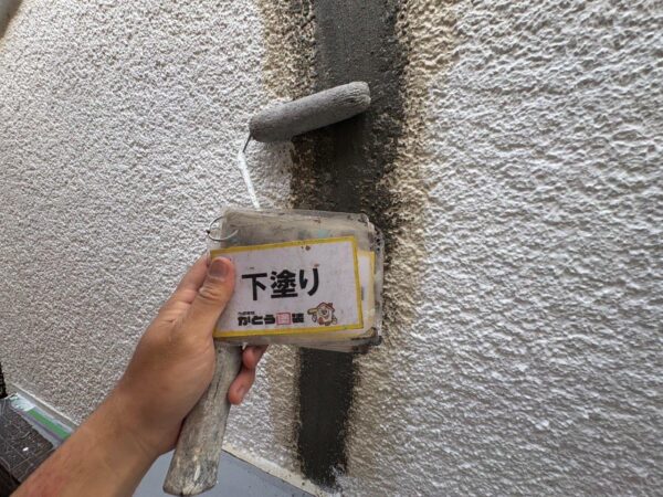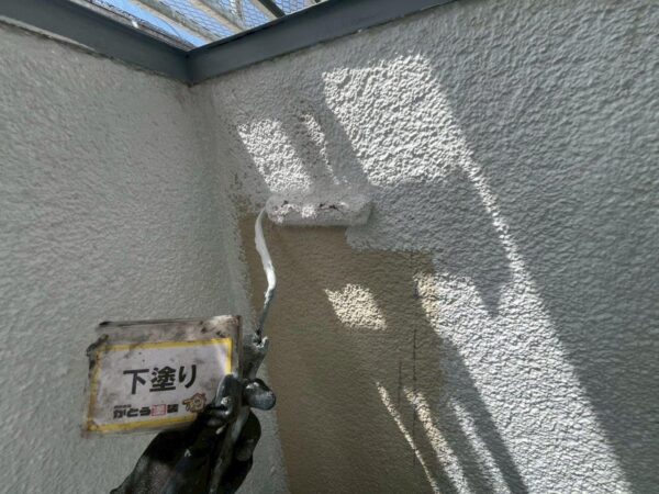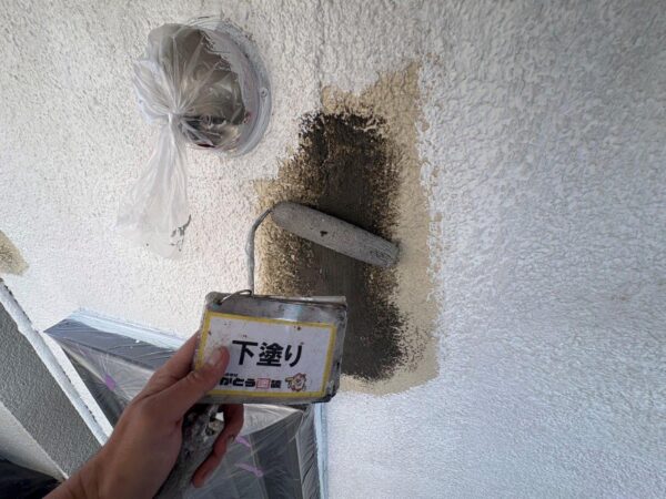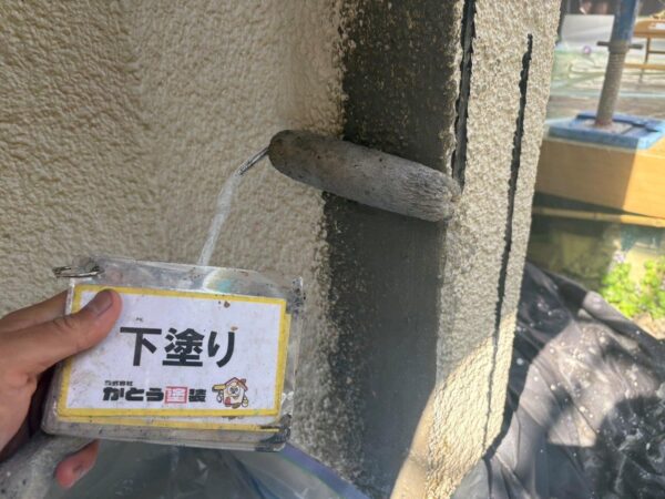 専用のモルタルを塗り付けたので乾燥後にカチオンシーラーを塗装します