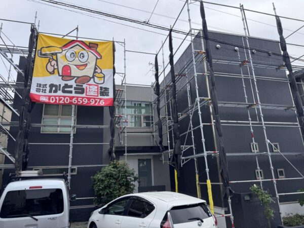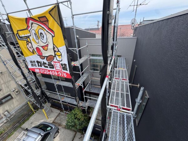 今回、錆止め塗装をおこない3回塗り仕上げにて施工しています
