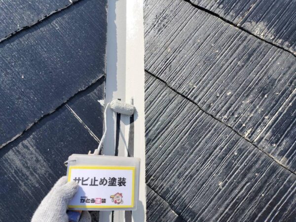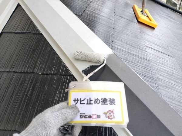 屋根の鉄部も錆止めをいれています