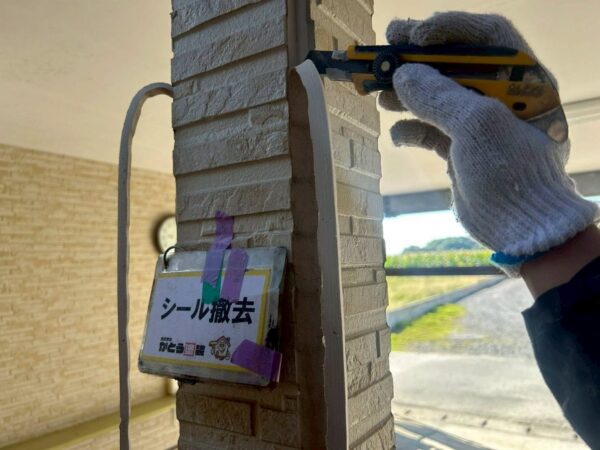 シーリング工事をおこないます、シーリング撤去の様子です。