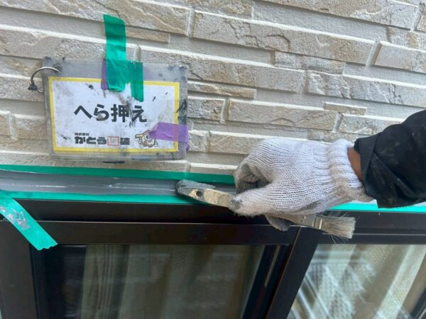 シーリング材を充填し、ヘラで押さえ密着性を高め、表面を整えます。