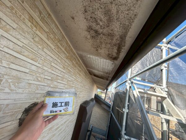軒天は完全に白さを失い、黒く汚れていました。