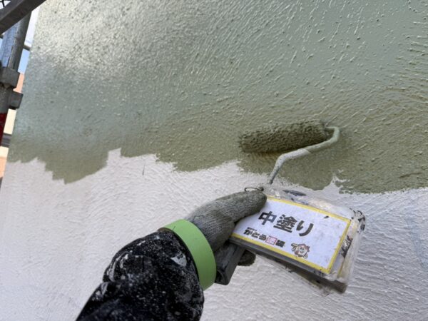 外壁の中塗りの様子です。