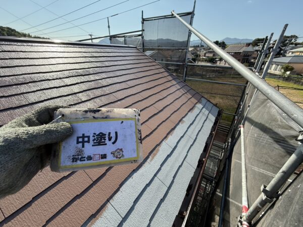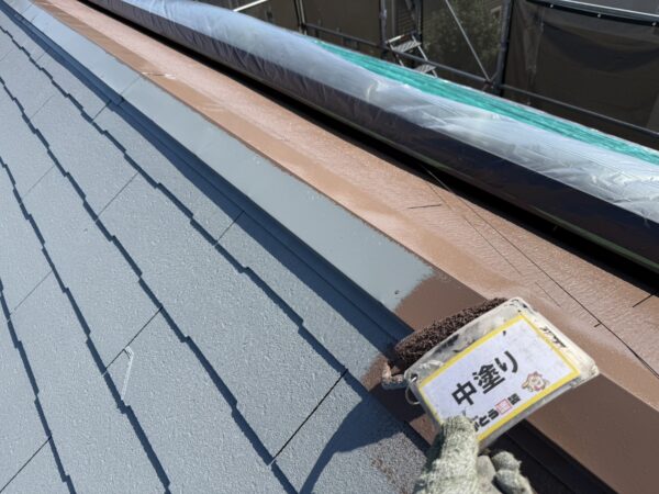 屋根の中塗りの様子です。