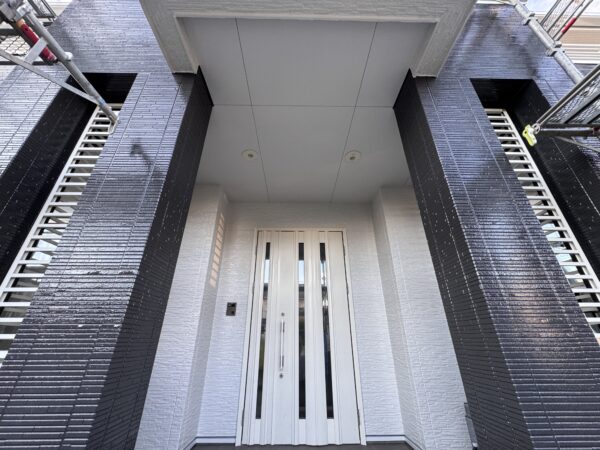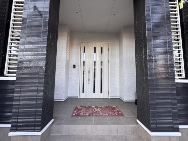 軒天と外壁の白さのおかげで、パッと玄関周りを明るくしてくれます。