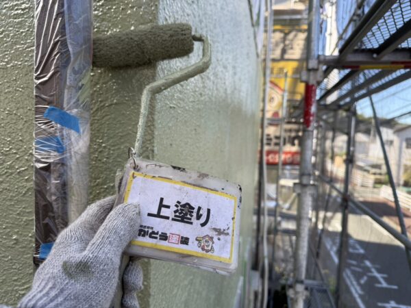 外壁の上塗りの様子です。