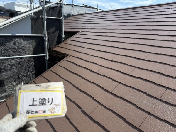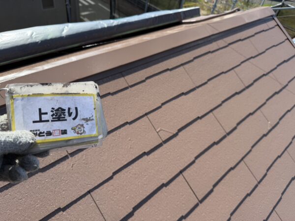 屋根の上塗りの様子です。