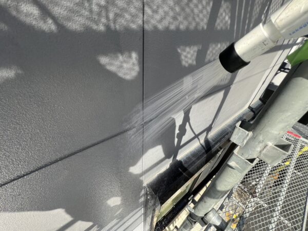 外壁やサッシ周りなど、複数個所散水をおこないます。