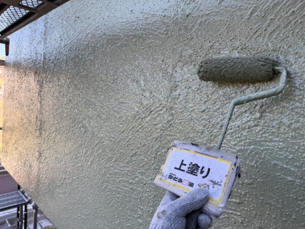 外壁の上塗りの様子です。