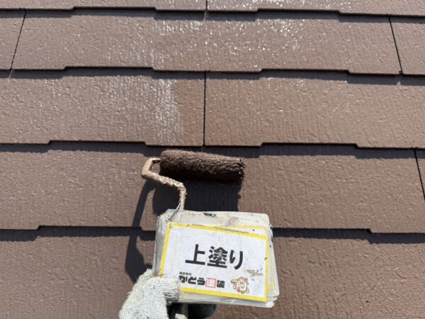 屋根の上塗りの様子です。