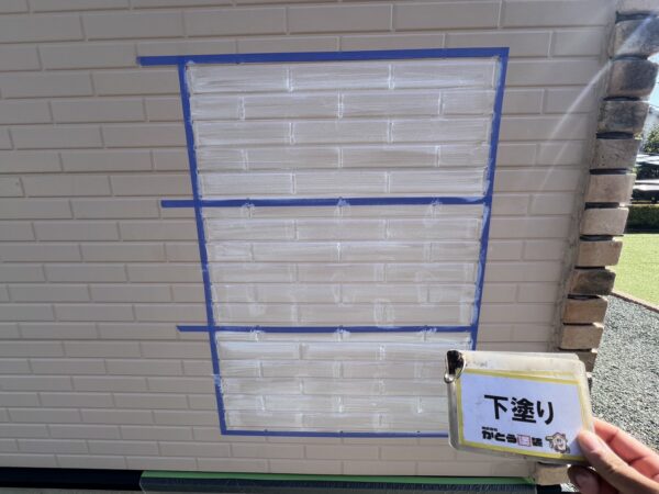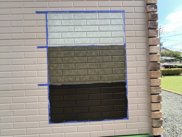 下塗り、ベースA色、模様付けB色を写真のように外壁に施し、施主様の思い描く仕上がりイメージに合ったデザインや色味を施工前にしっかりヒアリングすることが大切です。