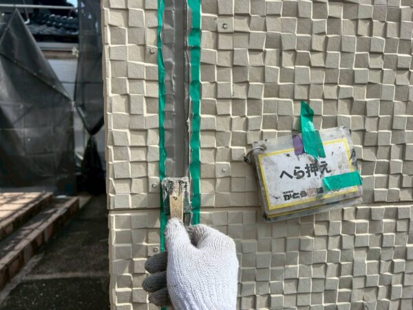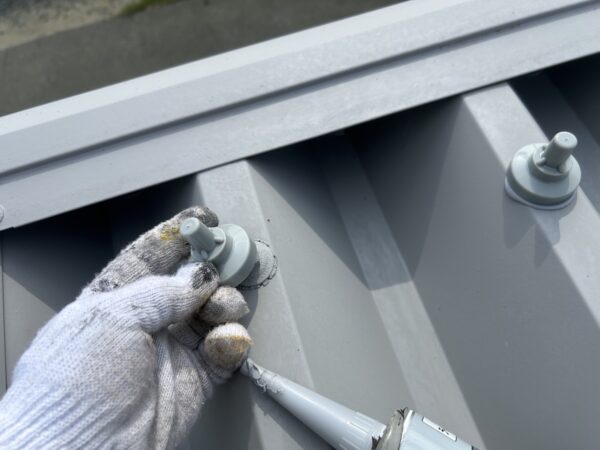 ヘラで押さえ、シーリング材が隅々まで行き渡らせます。