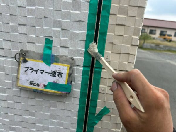 プライマーを塗布し、シーリング材を目地にたっぷり充填します。
