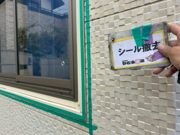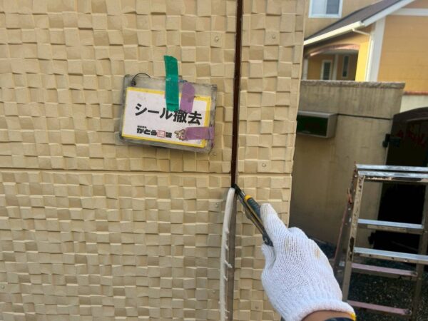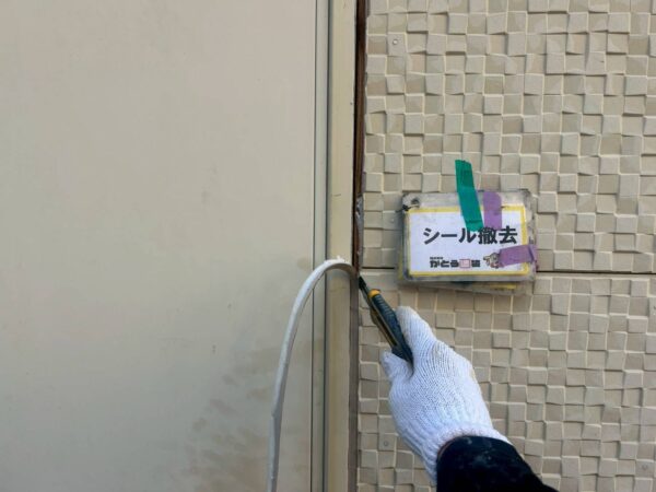 カッターを使い慎重に、既存のシーリングを撤去します。
