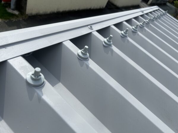 駐車場の屋根の塗装、キャップの取り付けをしております。