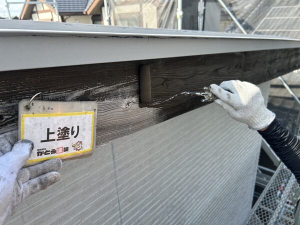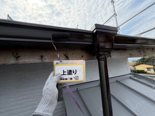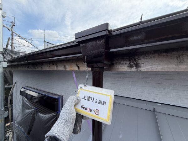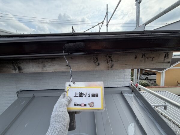 雨樋のケレン、上塗り、上塗り2回目の様子です。