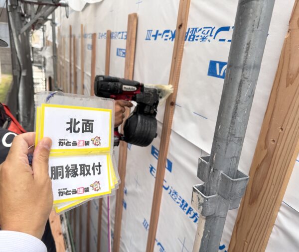 今回使用しているルーフィングは、夏は外壁からの輻射熱を反射し、室内への熱を軽減してくれるので快適な空間を実現してくれます。