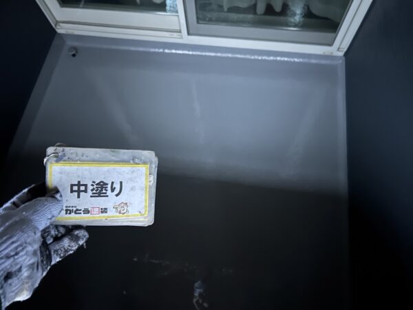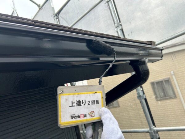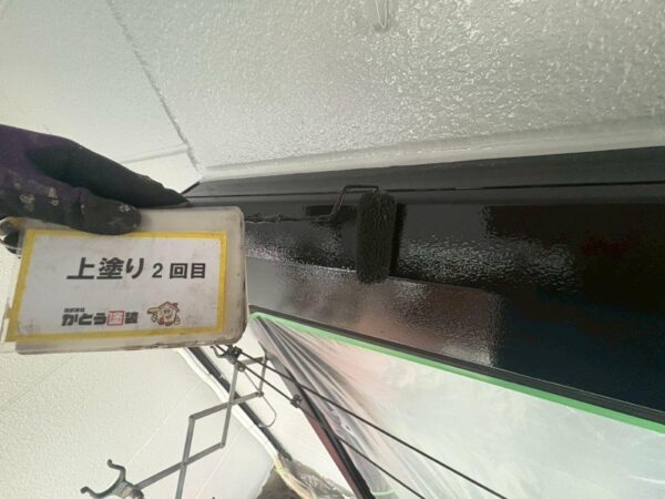 中塗り後、トップコートを上塗り塗布し表面を保護して完成になります。