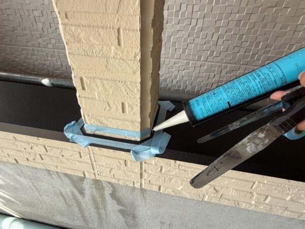 塗料の付着を防ぐため、しっかり養生をおこないます。