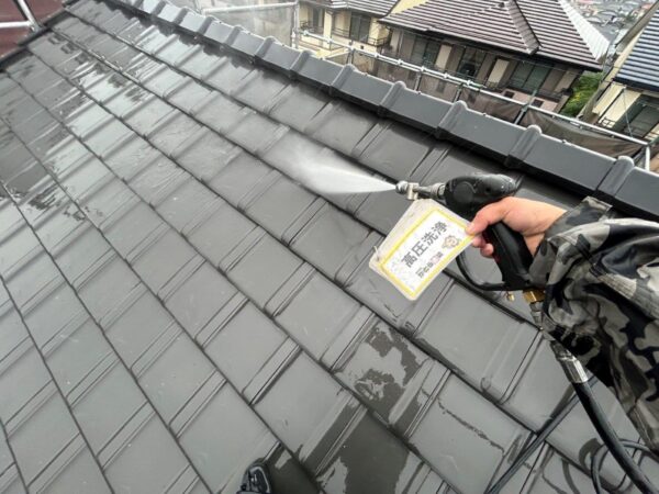 今回屋根は塗装をおこないませんが、洗浄し綺麗にしておきます。