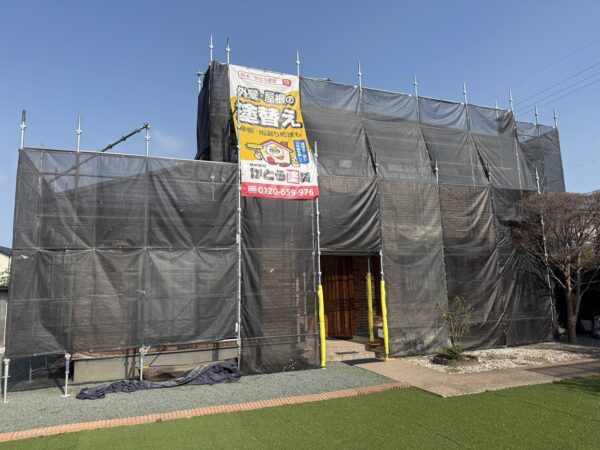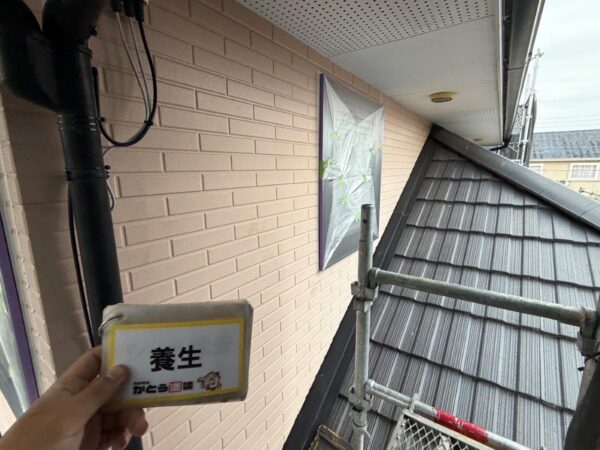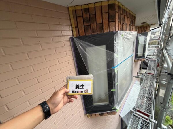 塗料の付着を防ぐため、しっかり養生をおこないます。