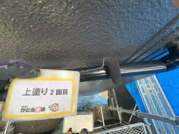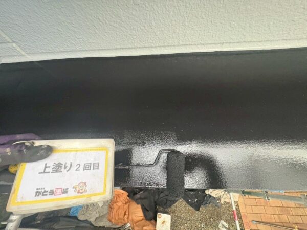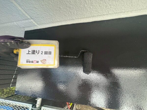 中塗り後、トップコートを上塗り塗布し表面を保護して完成になります。