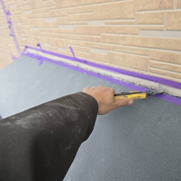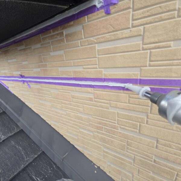 シーリング材を目地にたっぷりと充填し、ヘラで押さえ隅々まで行き渡らせます。