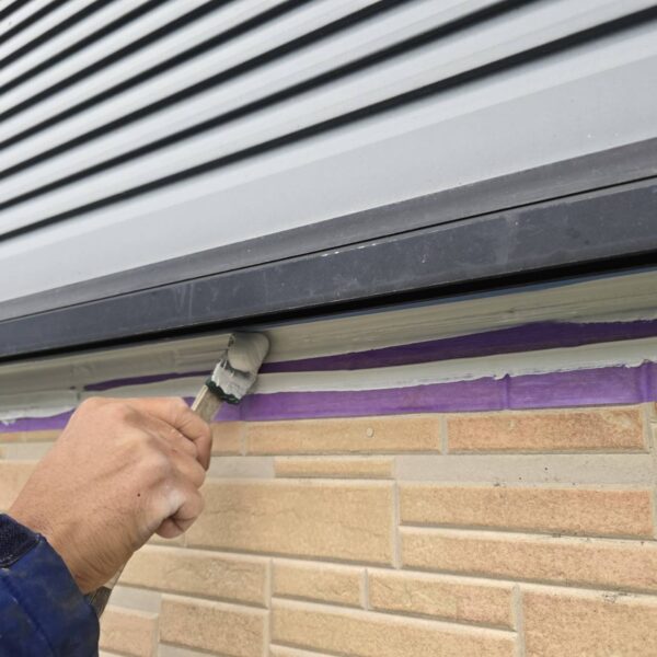 軒先水切り板金取り付けの様子です。