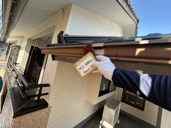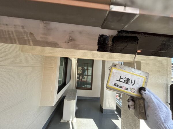 雨樋のケレン、上塗りの様子です。