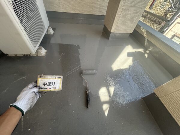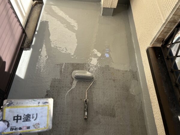 防水塗装の中塗り状況になります
